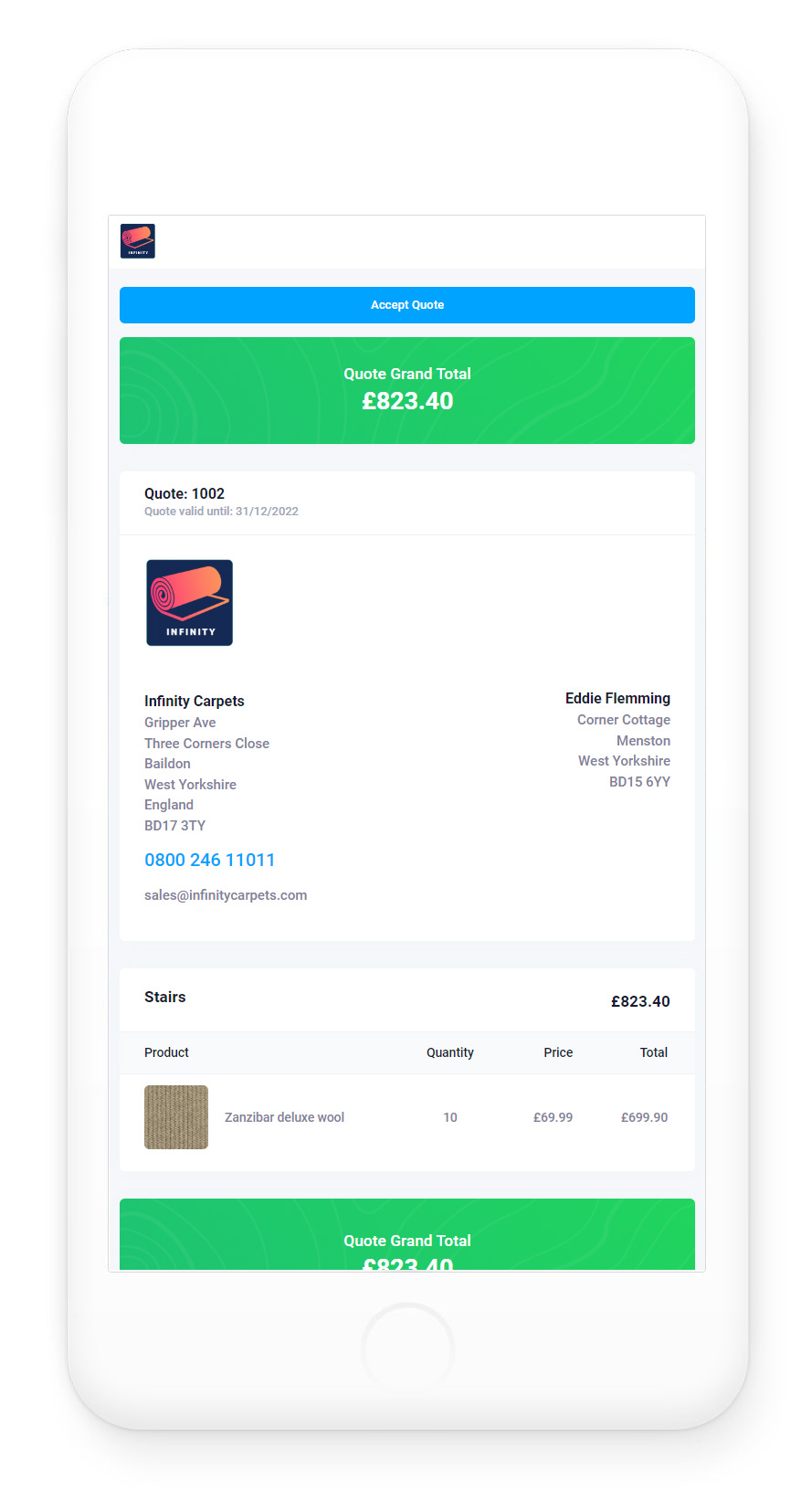 Customers can view their quotes instanty on any device, anywhere in the world